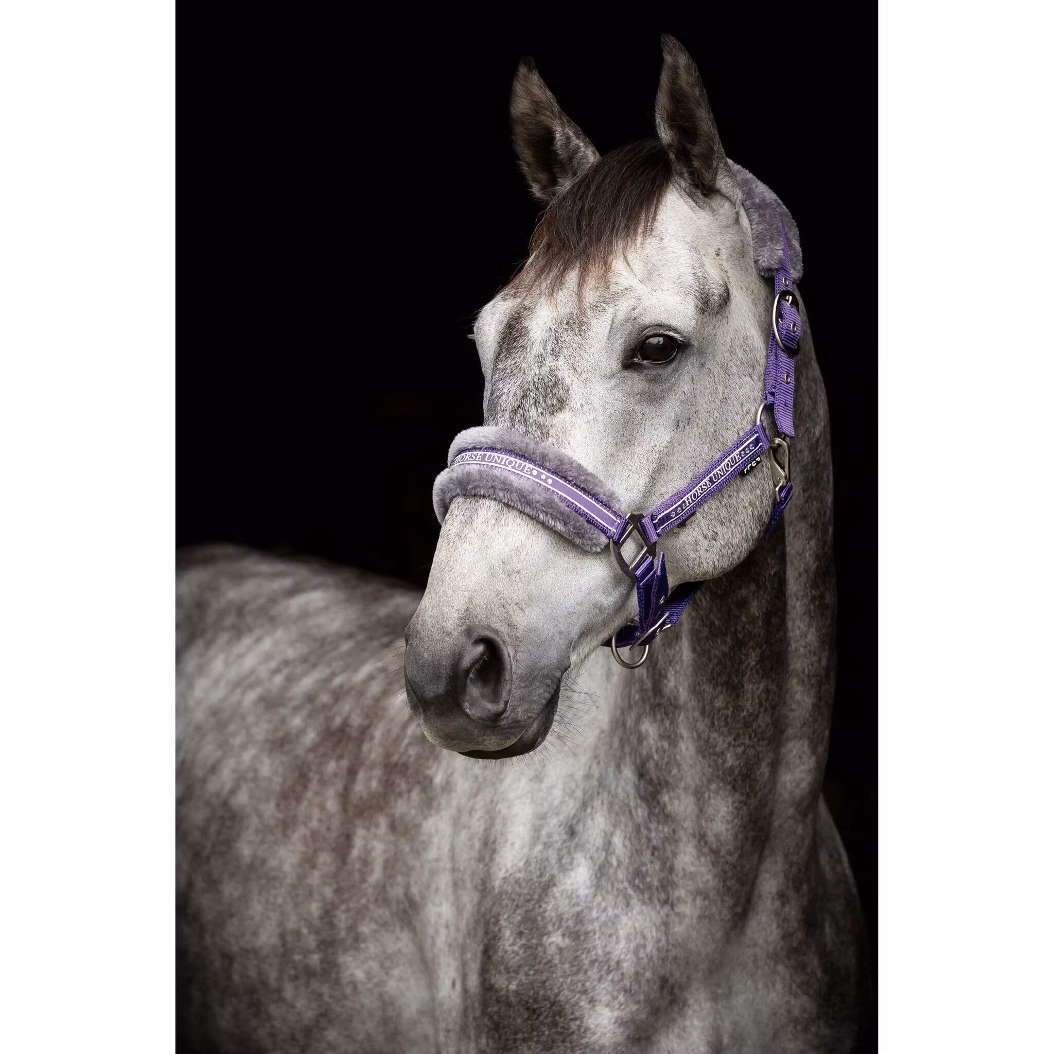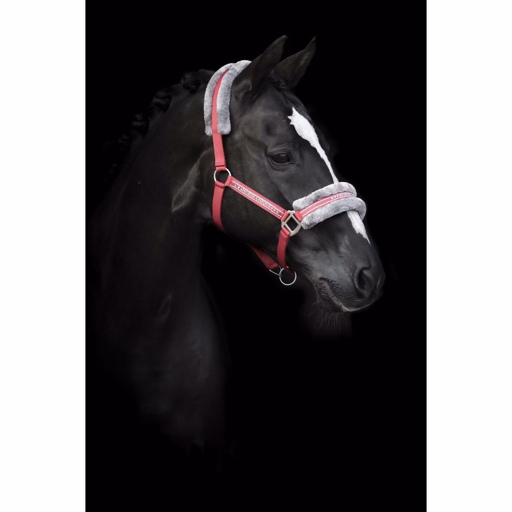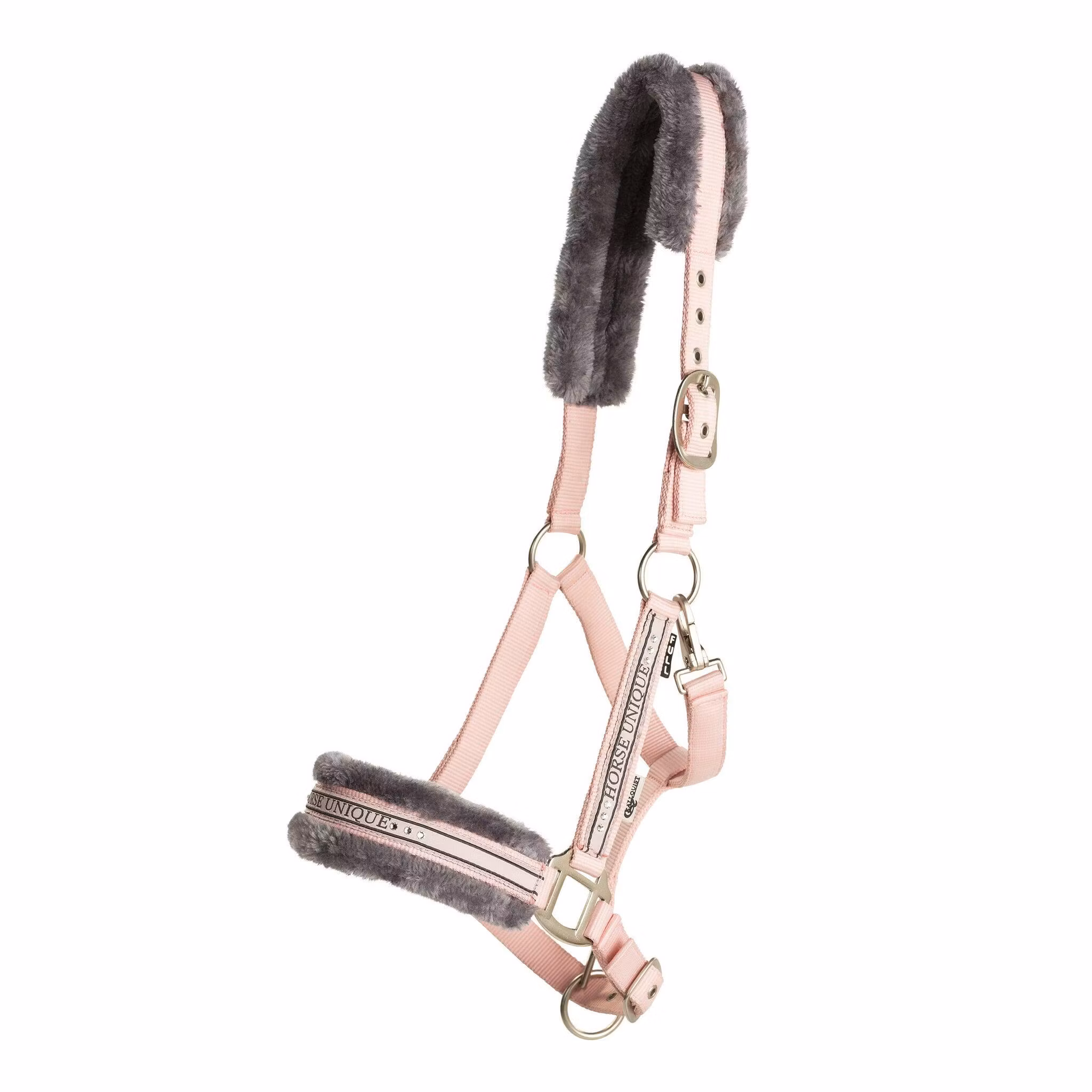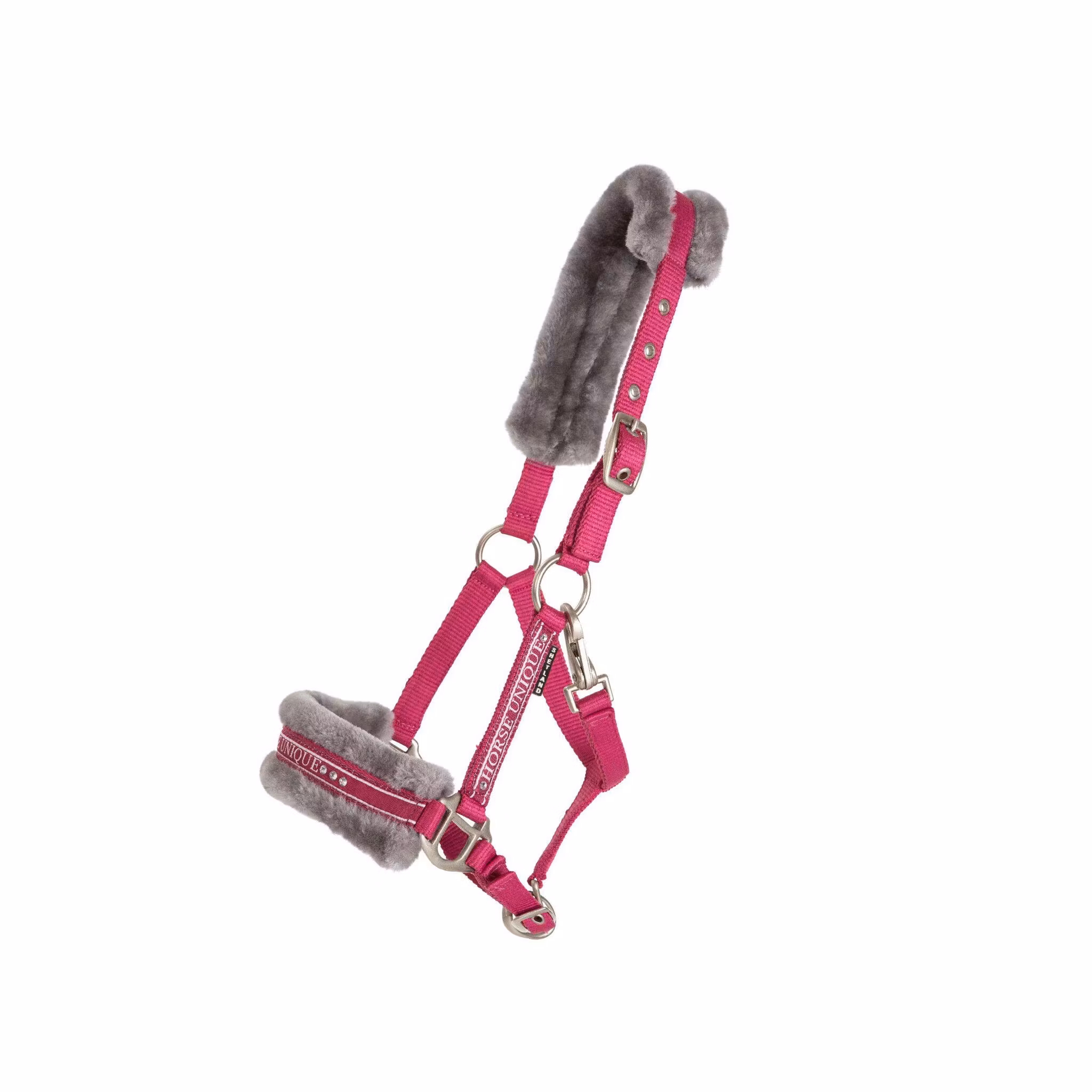 Grimma i polypropylene i många läckra färger med mjukt ludd mot nos och nacke. Stenar på sidostycken och nos, ställbar nack- och nosrem med spännen i matt silver.