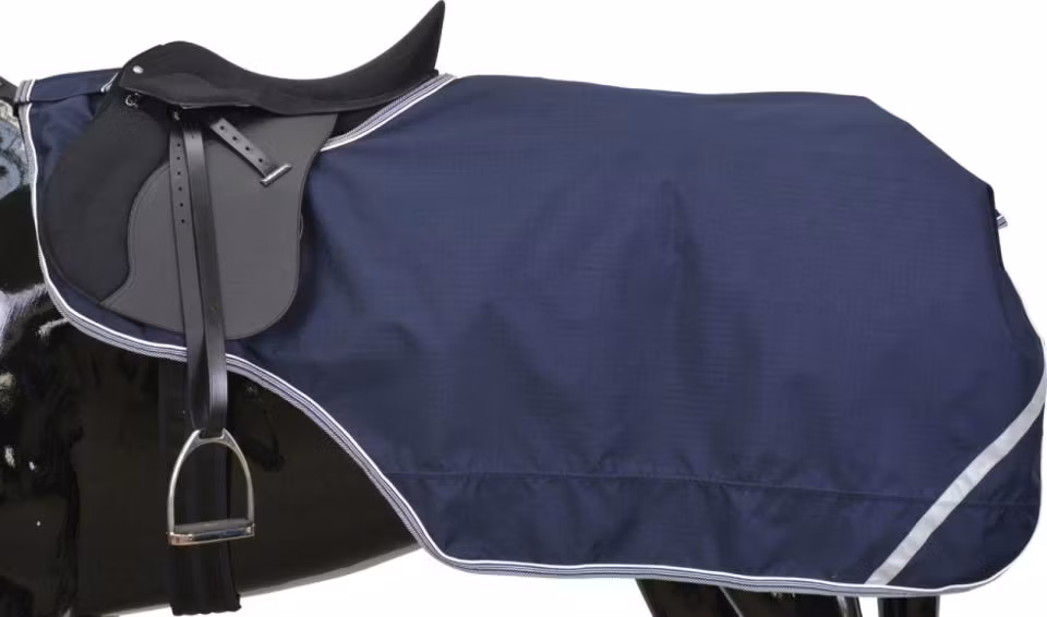 Logga tillkommer baktill på täcket vilket bild ej visar! Ofodrat, vattenavvisande ridregntäcke, från Horse Guard, som ger hästen ett effektivt skydd från såväl vid som vatten. Perfekt att använda under höstens blötaste ridpass, eller under vår och sommar när himlen plötsligt öppnar sig!
