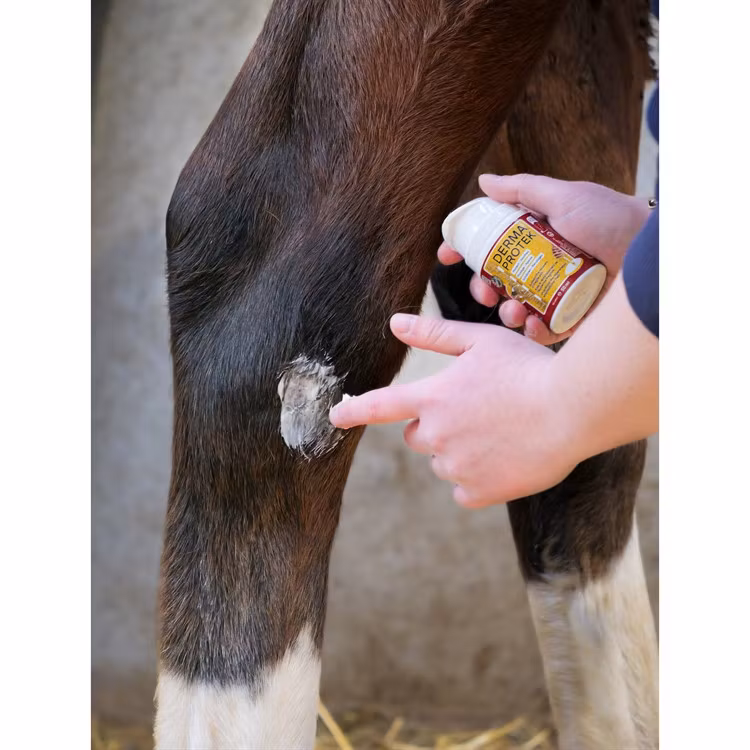 Applicera Derma Protek på det berörda området och massera in för att underlätta absorptionen. Täck hela området med ett tunt lager.